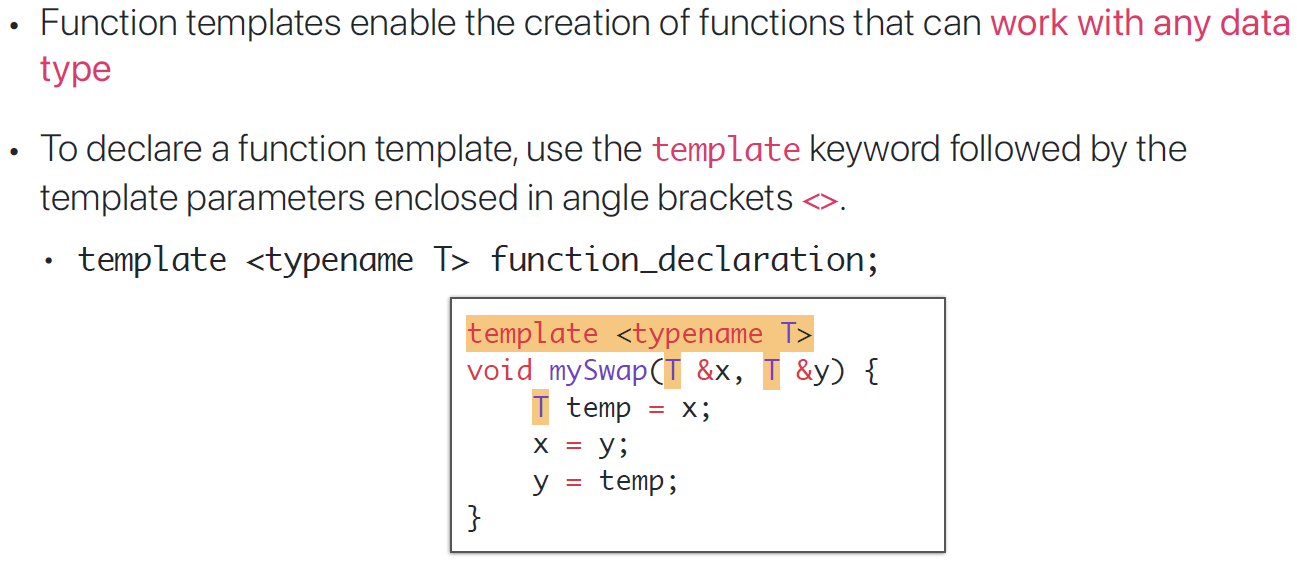 Template을 이용하면 어떤 Data type과도 function은 호응할 수 있다.