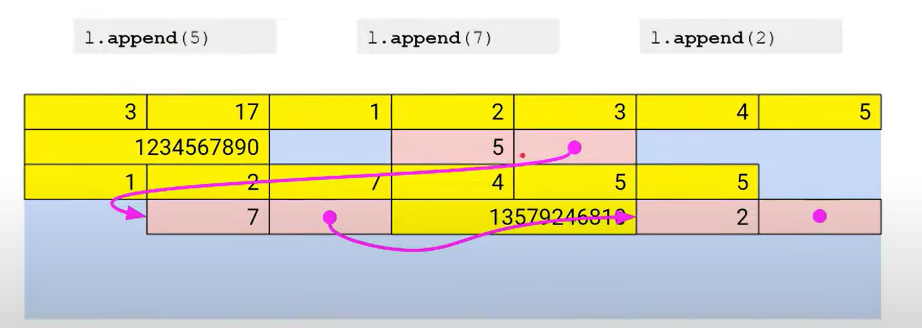 List가 [1,2,3,4,5] 만 있던 메모리 공간이 있는데 중간에 insert, del 그리고 마지막칸에 메모리가 차 있는데 append를 어떻게 하는지에 대한 궁금증을 해소해야 한다! 별로 안 궁금한데 해소를 해야 한단다..ㅎ