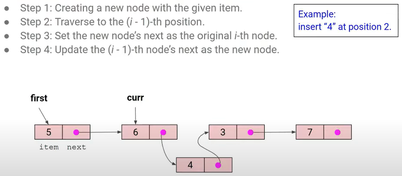 3) New node의 Next를 i-1번째의 Next로 세팅한다