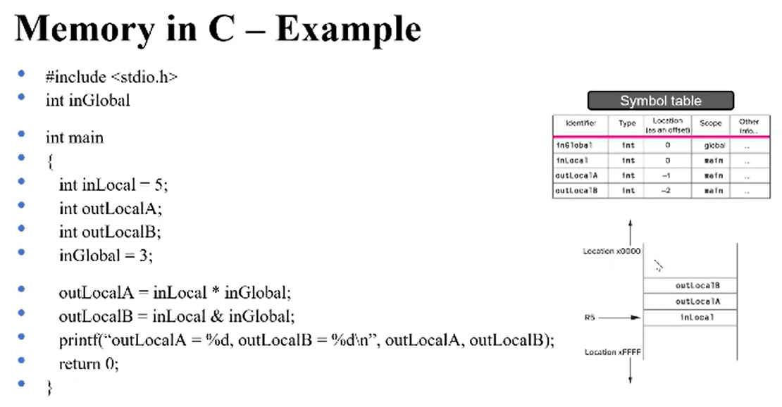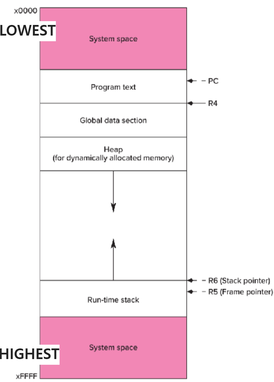 --> Run-time stack이 사용되는 가장 높은 주소를 R5(Frame Pointer, 밑바닥주소)가 가르킨다.