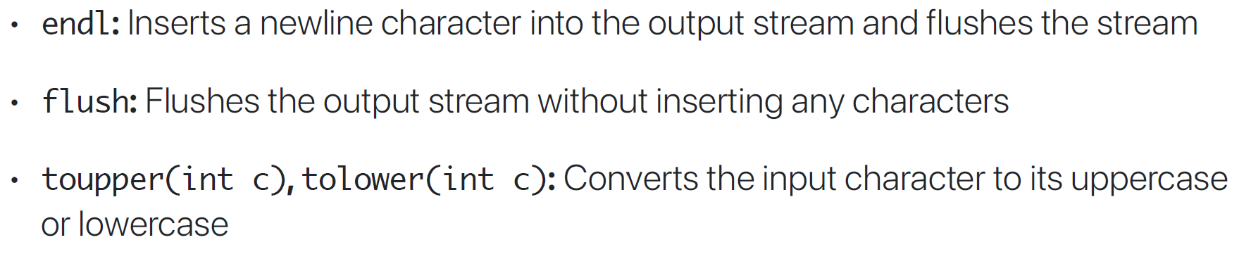 - Flush? : flush manipulator는 '\n' 없이 flush 해준다. ex) " cout << text << flush; "