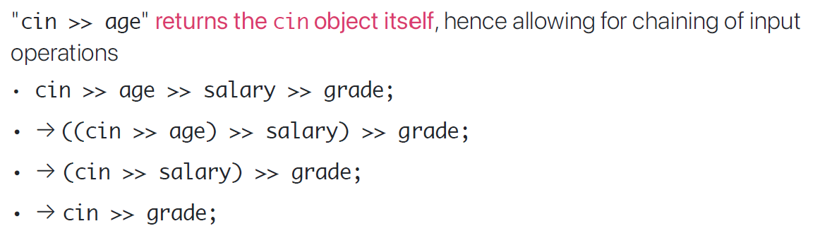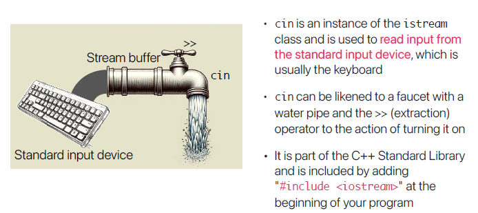 - cin 과 cout은 predefined 며 globally accessible한 Variable이다.