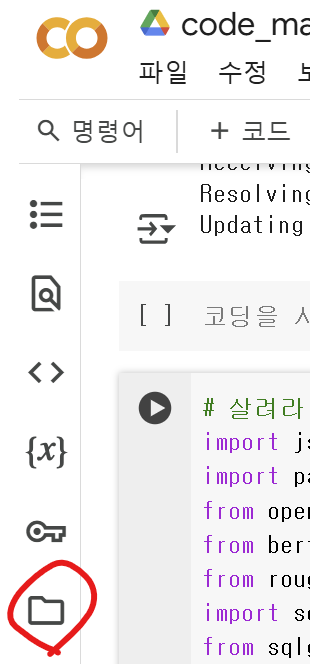 만약 Directory가 헷갈린다면, 아래 Colab 환경에서 직접 눈으로 파일들의 위치를 확인할 수도 있다.