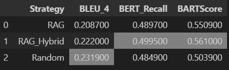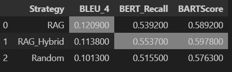정 애매하면 여기서 RAG_Hybrid는 일단 제외하고 RAG만 Random보다 효과가 좋다는 내용에 집중해서 실험내용 정리하는 것도 좋겠다.