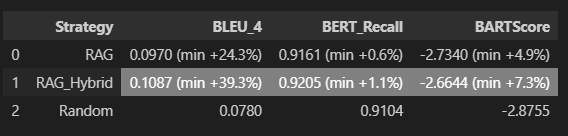 일단 마사지 하기 전, 데이터는 위와 같은데 dev / train set 모두 nano 모델에서 RAG Hybrid가 가장 성능이 좋다. 근데 생각보다 드라마틱한 성능향상은 없어서 좀 머쓱하긴 하다..