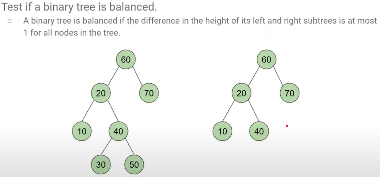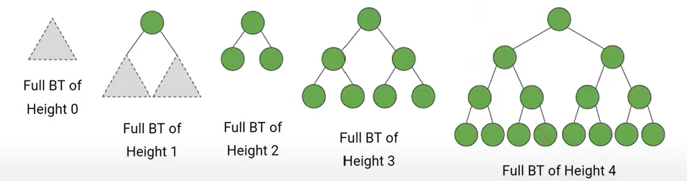 - Tree의 Height 를 h라고 했을 때 --> Tree가 비어 있거나(h=0) , h-1인 left / right subtree가 모두 full이어야 한다.