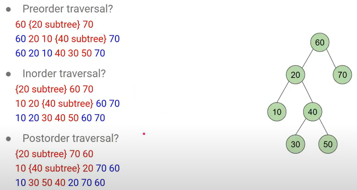 - 어떤 Tree가 주어져도, Preorder / Inorder / Postorder Traversal에 따라 Node 방문 순서를 표현할 수 있어야한다.