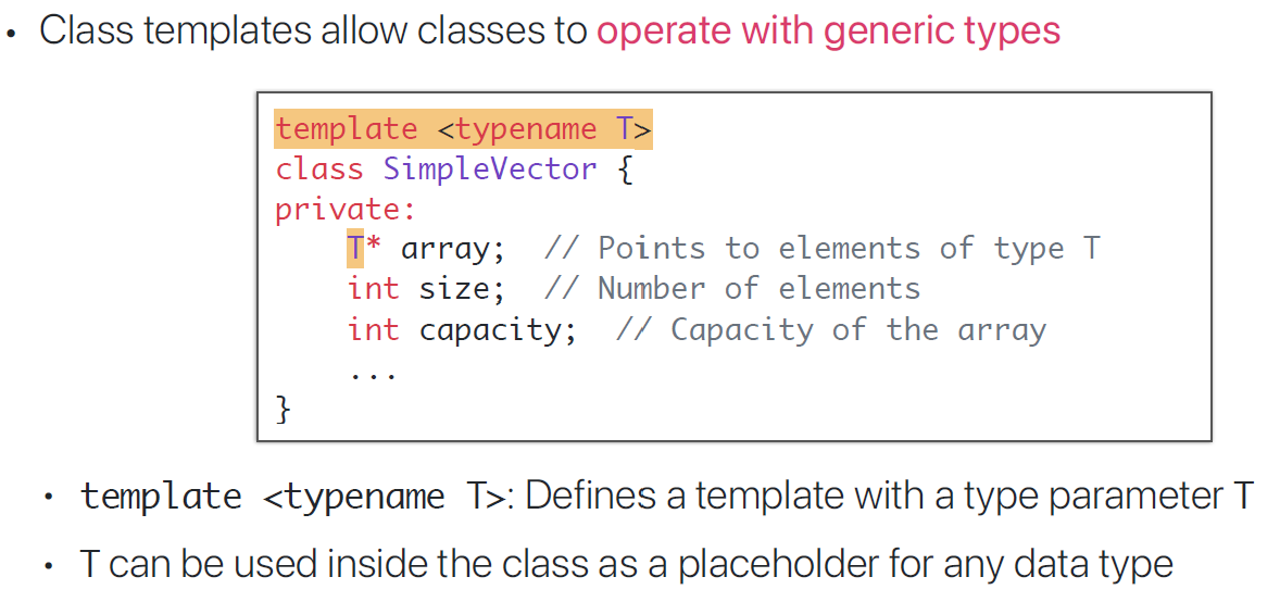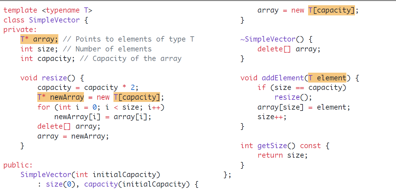 - 만약에 다른 type value를 받는 SimpleVector를 또 만들려면 class를 복제해서 또또또 만들어줘야 한다.