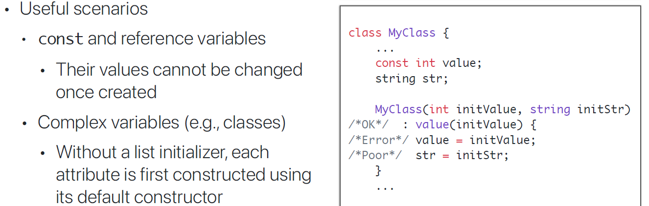 - 위에서, string str; declare 시 일단 빈 string str이 만들어진다. 그 다음 initializer로 initStr이라는 값이 할당되는 구조이다.