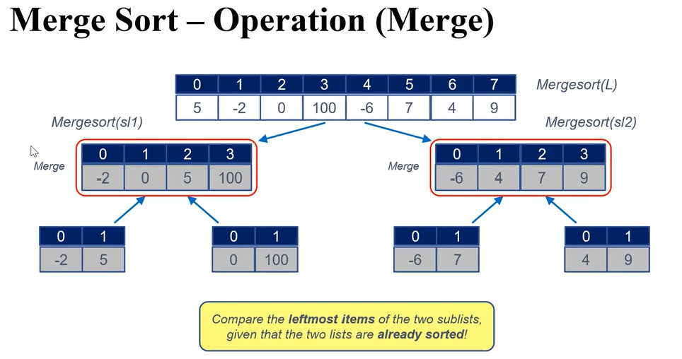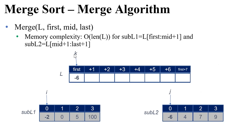 이 경우, Time Complexity는 O(len(L))이다. ( len(L)^2)이 아님! subL 들이 다 sorting이 되어있기 때문에, for문을 len(L)만큼 단 1회만 돌려도 Merge가 되는 시스템이다.