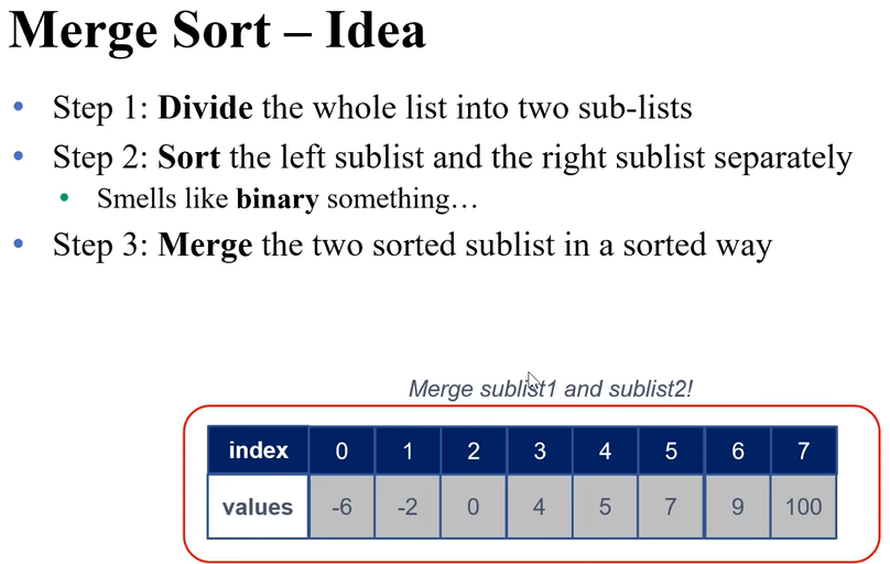 지금껏 Insertion / Selection Sort를 했을 때 time은 O(N^2)이었다. 소요시간을 더 줄여보기 위해 뭔가 Sort를 Binary스럽게, log스럽게 해보는 시도를 한 것이 Merge Sort!