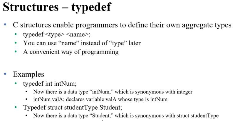 근데, structure studentType 이렇게 다 쓰기가 구찮다. 그래서 "type def"를 써준다.