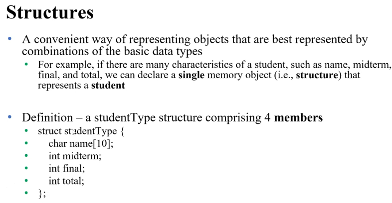 struct를 선언하면, 그 자체가 하나의 Type이 된다. 단, Data type을 "struct studentType" 까지가 Data type이다. 한 번에 다~ 써야 한다.
