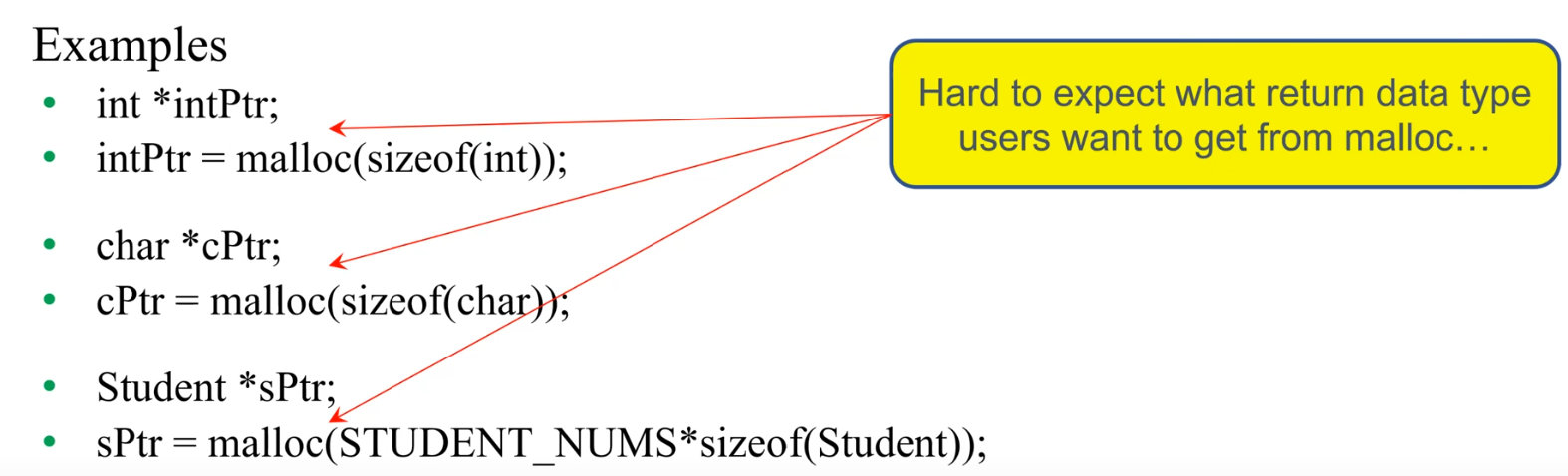 ※ stdlib.h 라는 헤더가 필요하다 for malloc