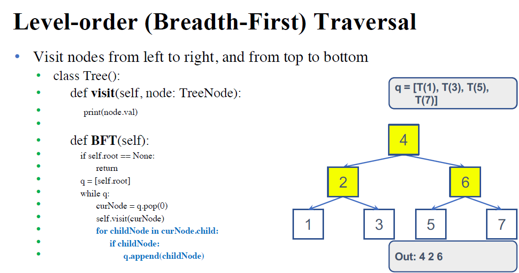 Tree구조를 가로줄로 쭉쭉 순서대로 방문한다.