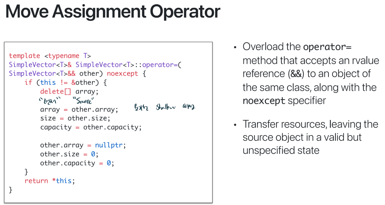 골자는, Overloading Body 안에서 기존<->Source Object간 swallow copy가 일어나고 그 다음 source ojt를 삭제시켜주는 것이다.