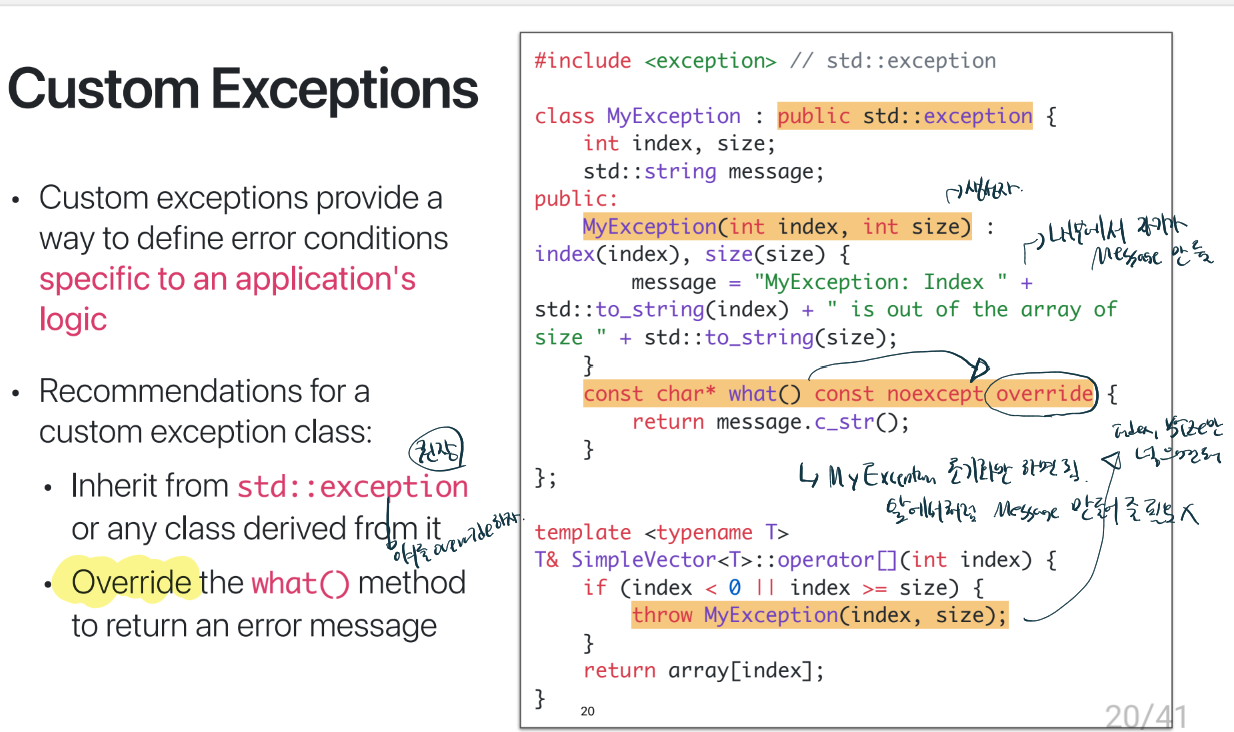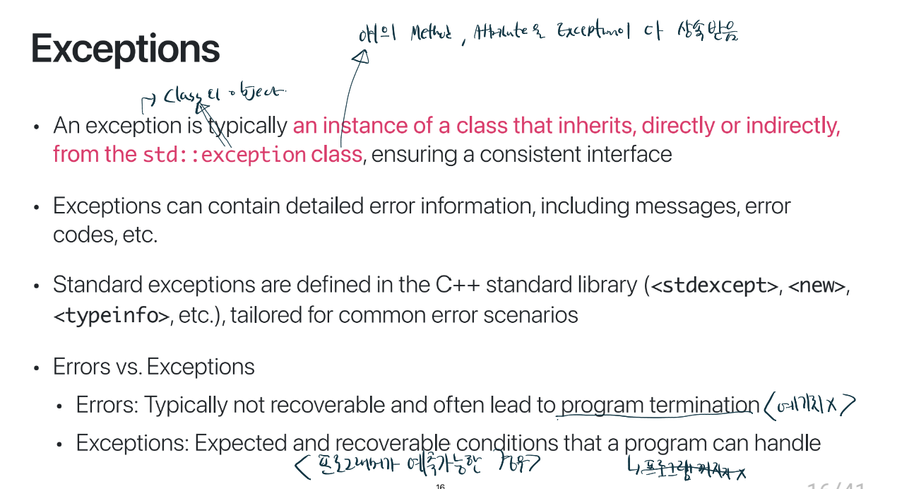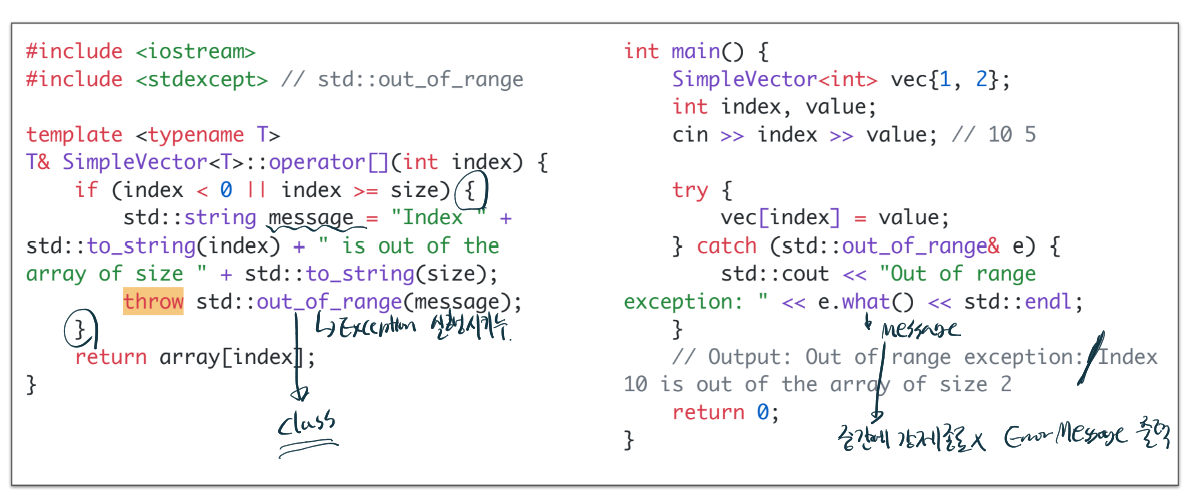 Error를 던지게 하는 대표적인 구문이 throw std::exception((); 이다.