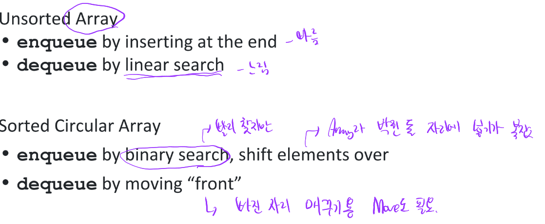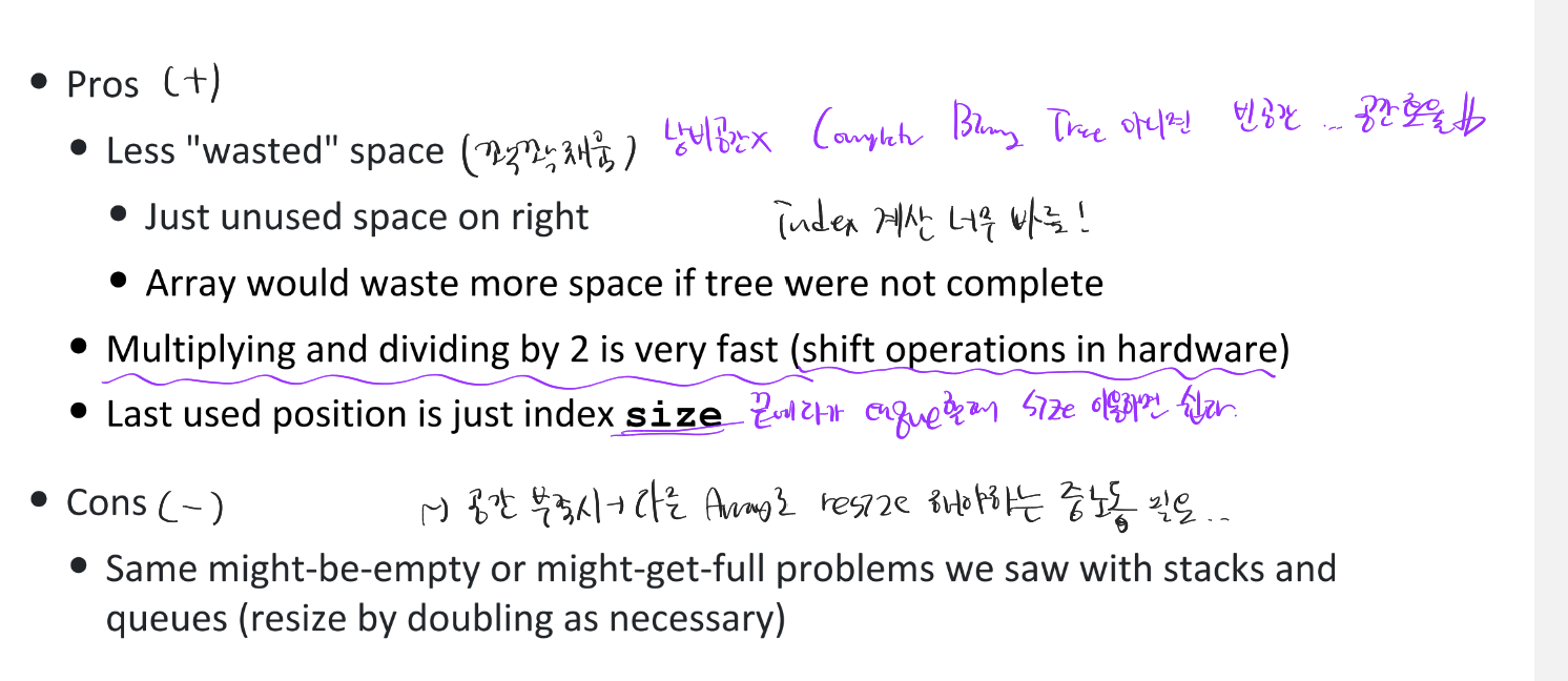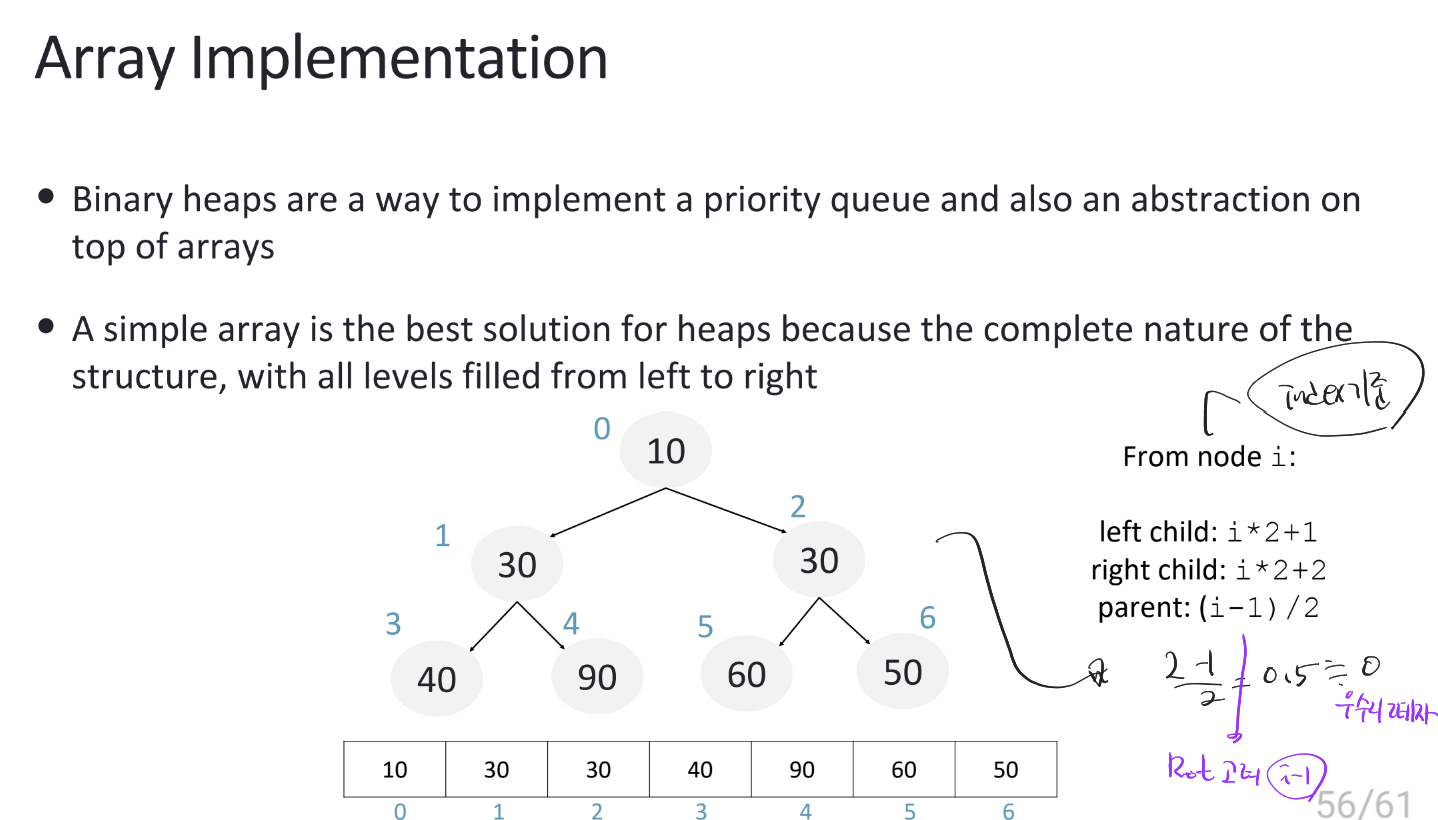PQ는 Heap 말고 Array로도 구현할 수 있는데, Array 구조 특성때문에 Structure를 고려하지 않아도 되어 method 구현이 쉬운 편이다.