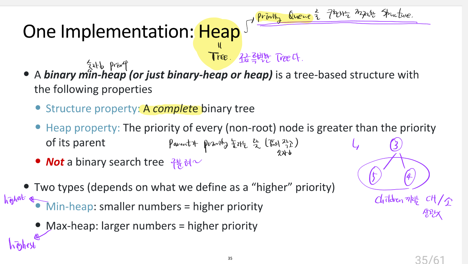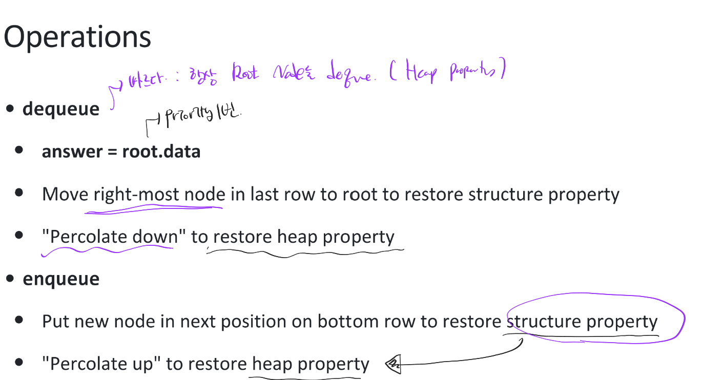 일단 element 추가 or 제거 후에 Structure 부터 살피고, 그 다음 Heap Property를 복구한다.