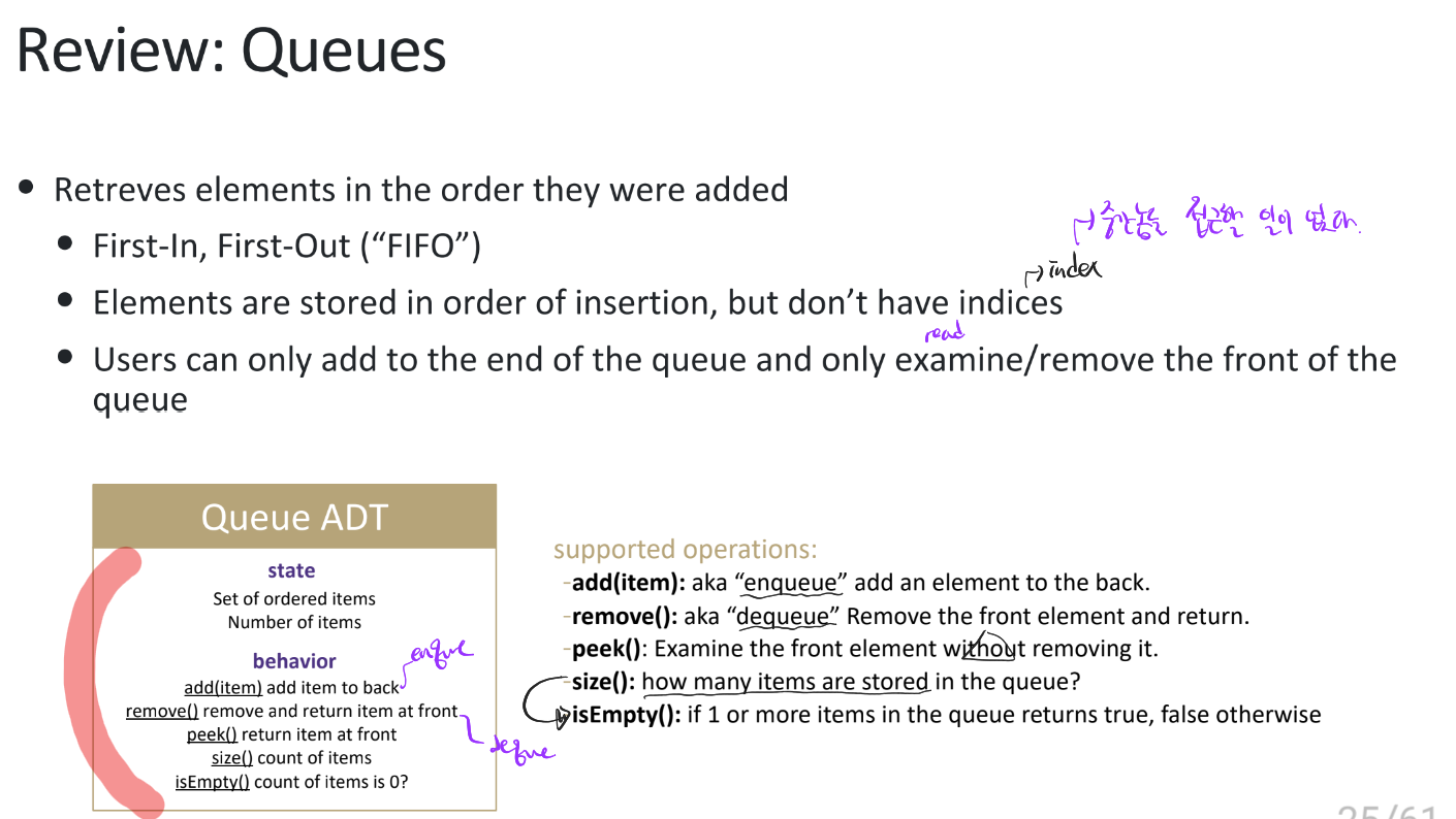 원래 기본 queue는 FIFO라 중간 element에 접근할 일이 없어서 indices가 무의미했다.
