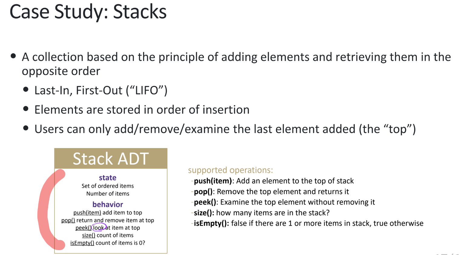 정석은 array의 경우 그냥 top 이라는 index로 조절해가며 method를 구현하는 것 like below